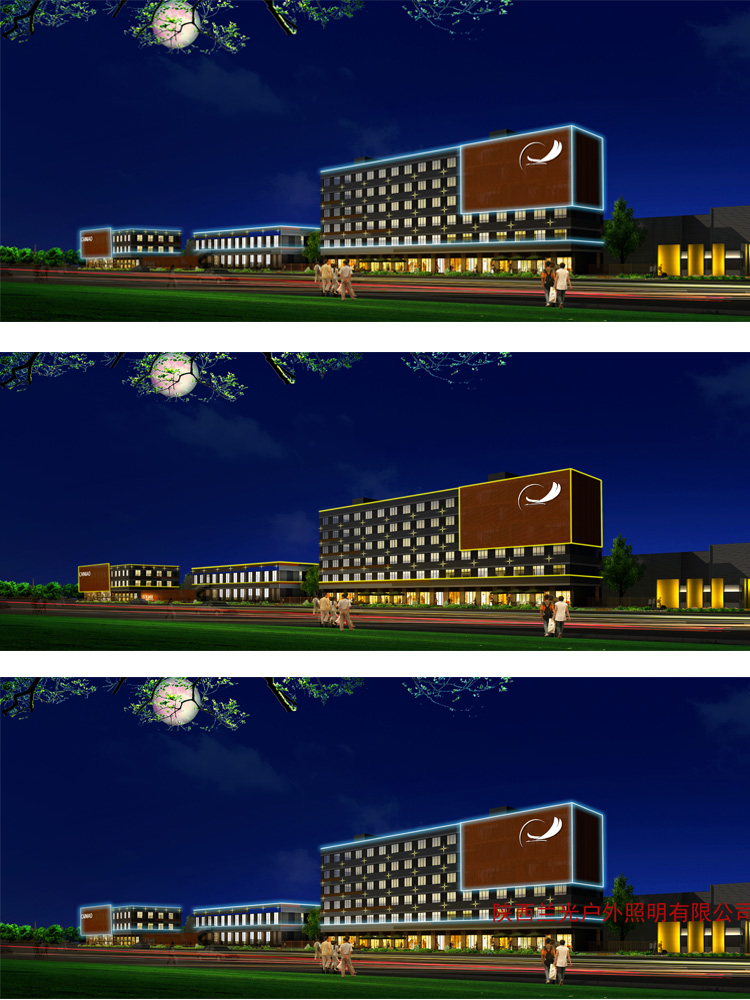 簡(jiǎn)介—— 菜鳥(niǎo)亮化項(xiàng)目是我公司和阿里巴巴西安菜鳥(niǎo)公司溝通,做的初步設(shè)計(jì)效果圖,結(jié)合菜鳥(niǎo)配送中心的功能性,在主樓體做發(fā)光亮化效果,主要采用線條燈勾勒,點(diǎn)光源點(diǎn)綴效果,到達(dá)客戶需求的亮化效果。
