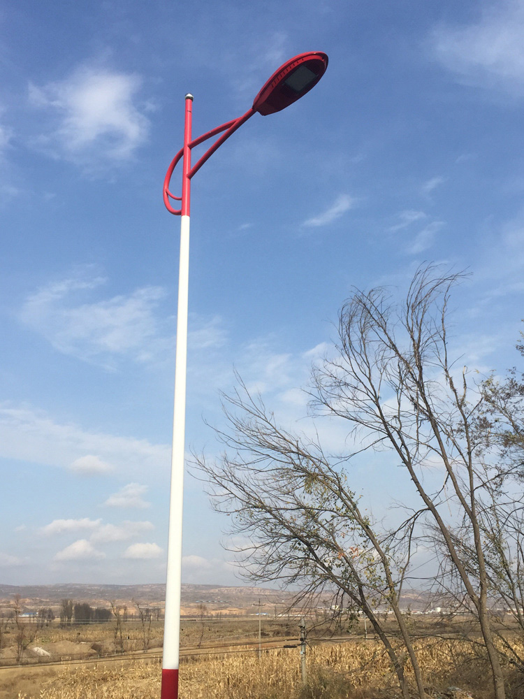 簡介—— 陜西榆林市橫山縣泗源溝村農(nóng)村太陽能路燈工程,泗源溝村保存著較為完整的鄉(xiāng)土文化,地處黃土高原與毛烏素沙漠接壤處,北望遼闊的沙漠,西靠雄厚的黃土高原之山脈,東臨著名的無定河。村莊采用的是我蘭光照明的6米高市電路燈,顏色為紅色為主,為村莊增添了不少喜慶氣氛。